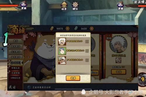 2. 商城购买:在游戏商城中,玩家可以用游戏币或真实货币购买忍者角色。